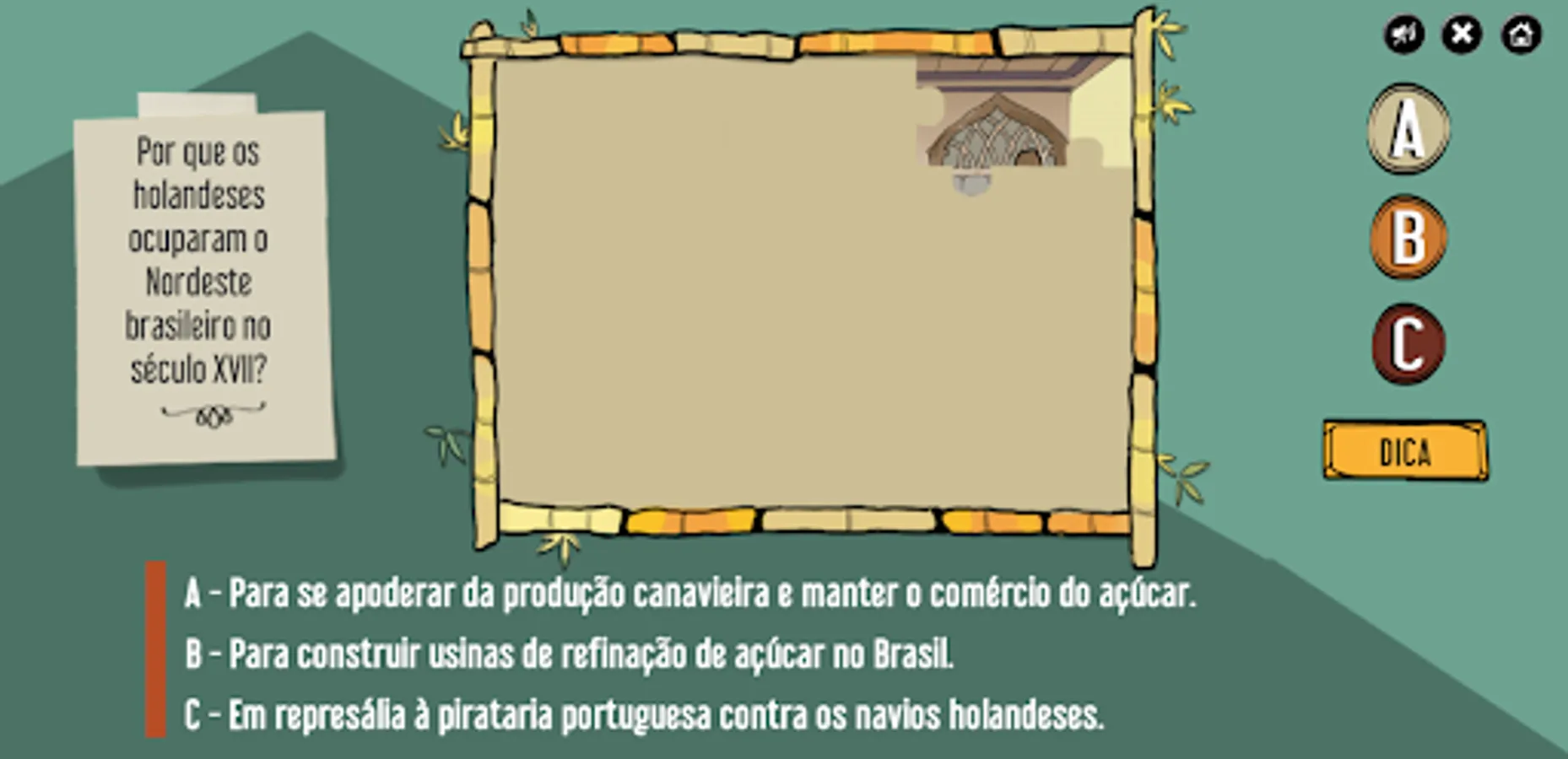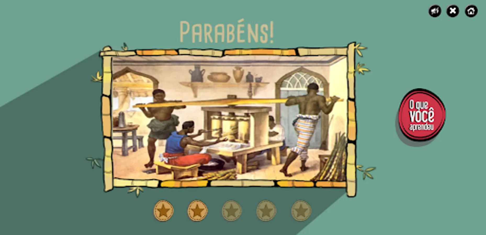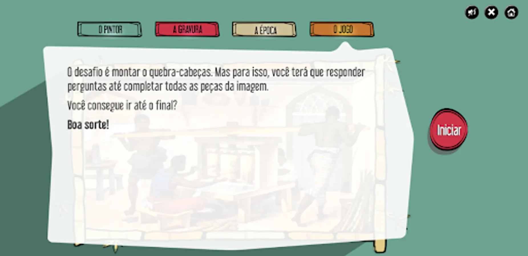 French painter Debret painted slaves grinding the cane inside a tavern in Rio de Janeiro to serve the broth to customers. The engraving was broken into pieces. Your challenge is to assemble the puzzle by answering the questions.
