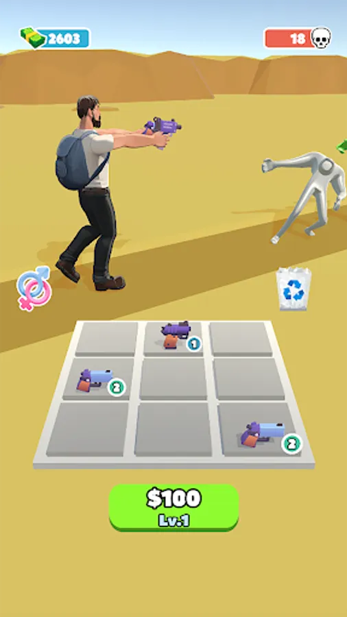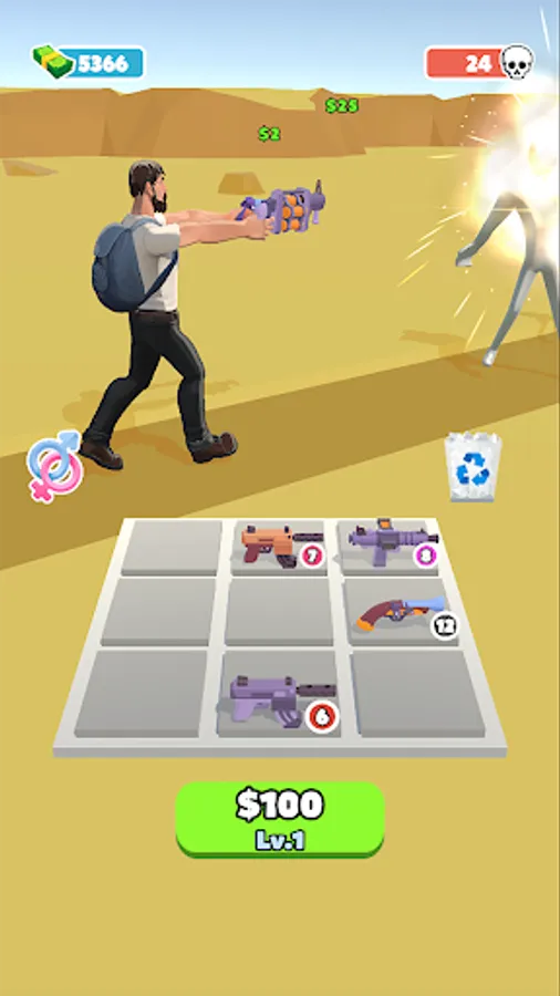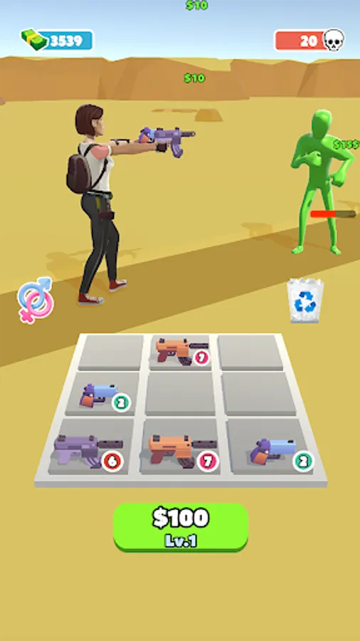 Merge Z is fun survival game. You need to merge guns to make your characters more powerful so they can protect themselves from an onslaught of zombies!