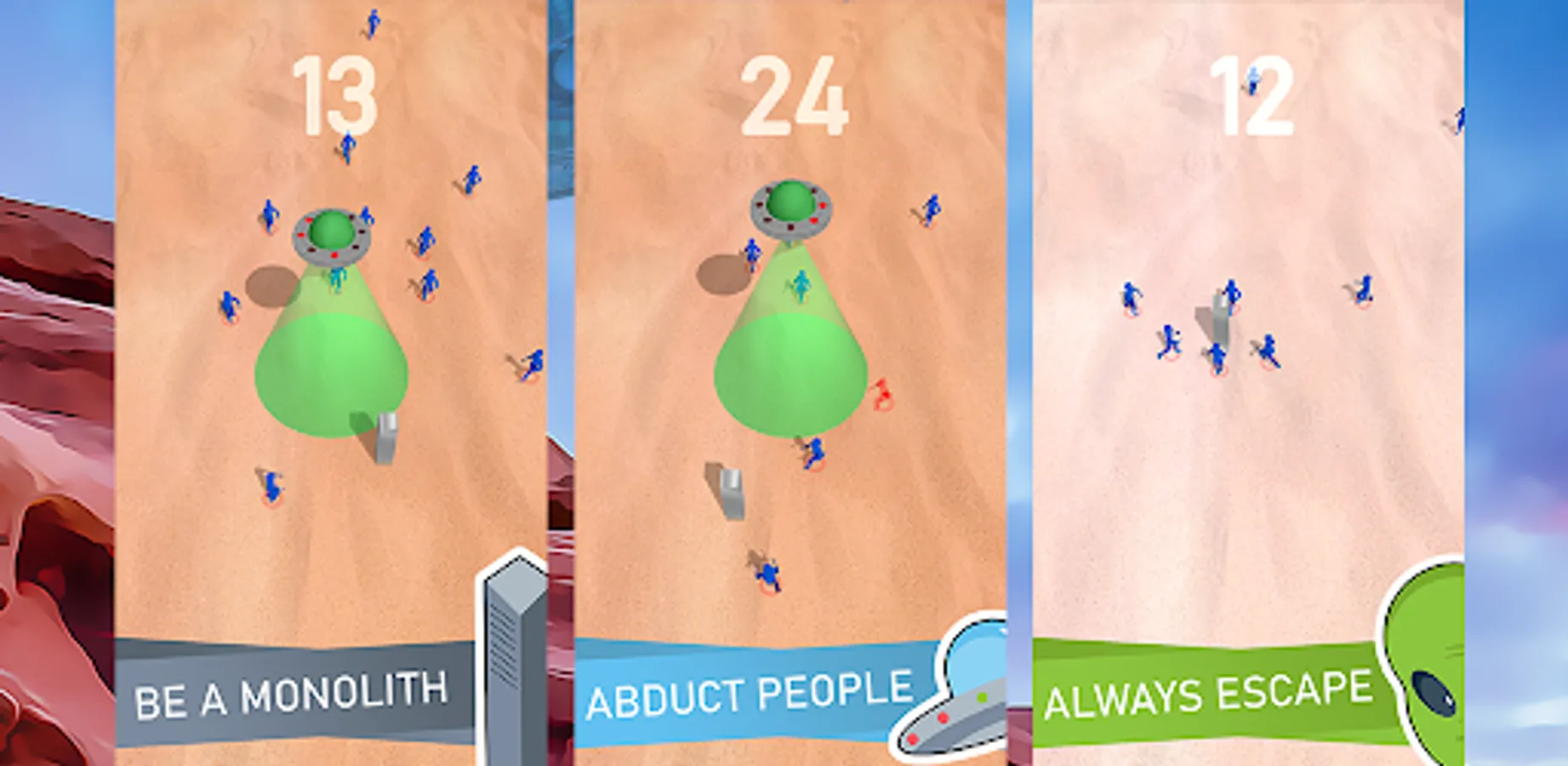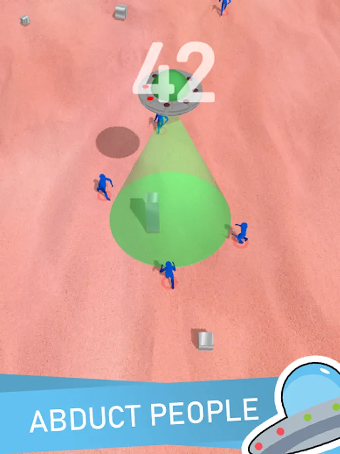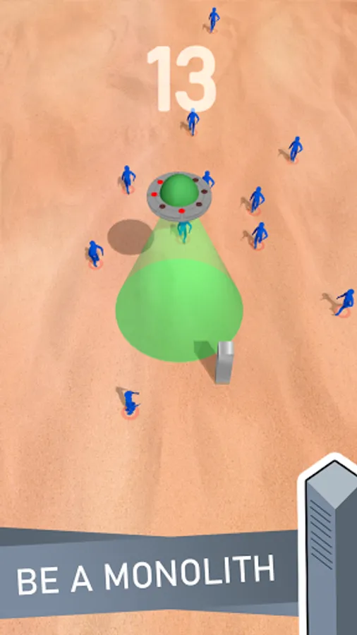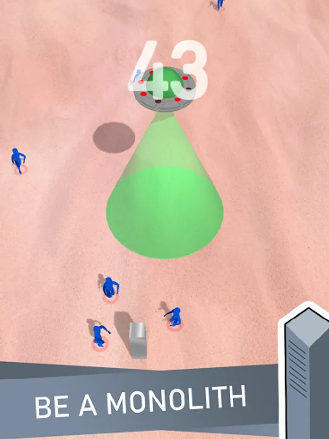 It is a trap to abduct people who are interested in the alien made metal columns with ancient language on them. You are also a part of this trap by controlling the monolith around. Help UFO abduct as many as you can without getting caught by people!