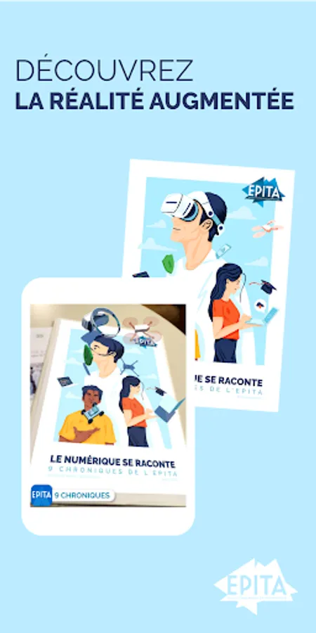 'EPITA 9 Chronicles' is an augmented reality application that allows you to discover the areas of school in a fun and immersive way. The application is being developed by 3IE, the EPITA innovation laboratory, on the occasion of the publication of the book "Digital is telling".