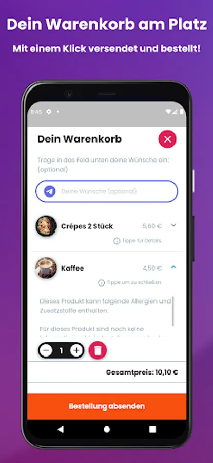 As a guest, order products from your restaurant's menu from your seat. No more lost or lost orders from the waiter's perspective.