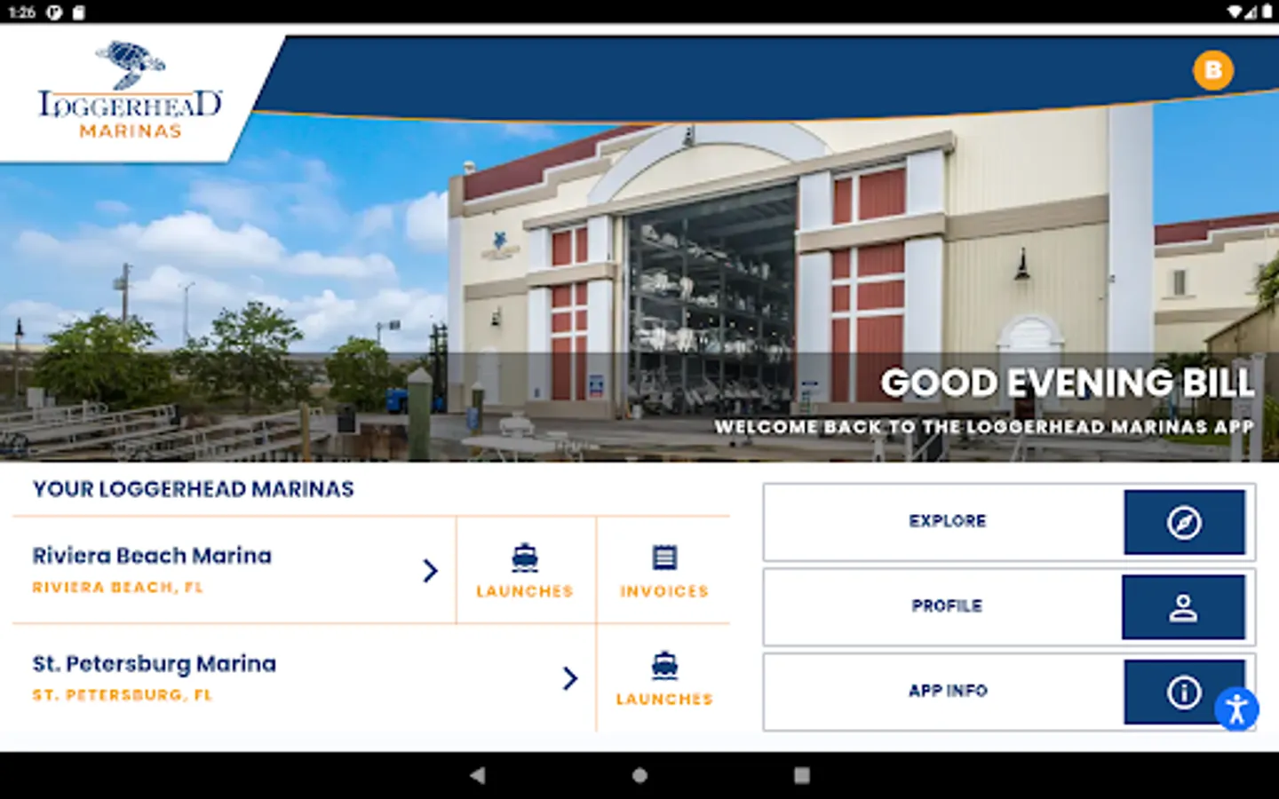 The Loggerhead Marinas App is an app designed for Loggerhead Marina customers to easily schedule boat launch requests, track launch progress, notify the marina of return, and view invoices.