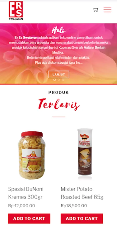 Er Es Swalayan is an online shopping application that was initiated by the management of Syariah Mandiri Cooperatives.