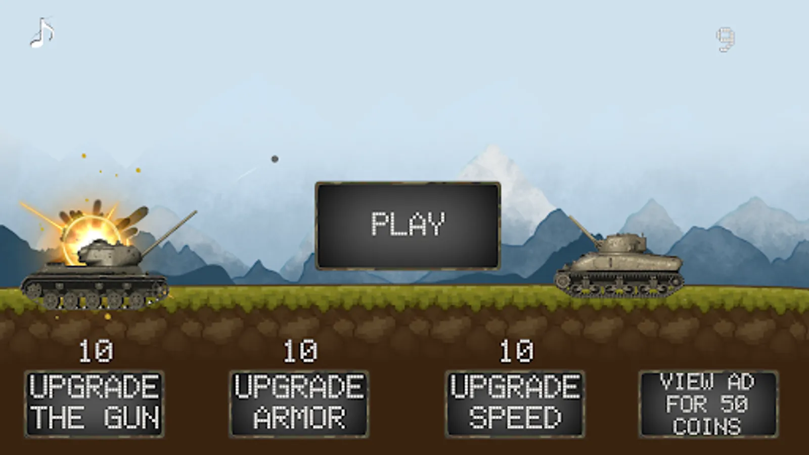 This is a 2D tank simulator in which you have to control a combat vehicle and come together in wars with various enemy battle tanks. There are three types improvements of equipment such as damage, speed or armor. Also in the game, with the help of pumping features, you can find an alternative way to complete the battle game.Two locations are available to simulate battles, but soon there will be more locations of different difficulty levels. See you on the war battlefield.