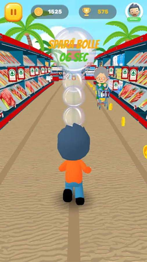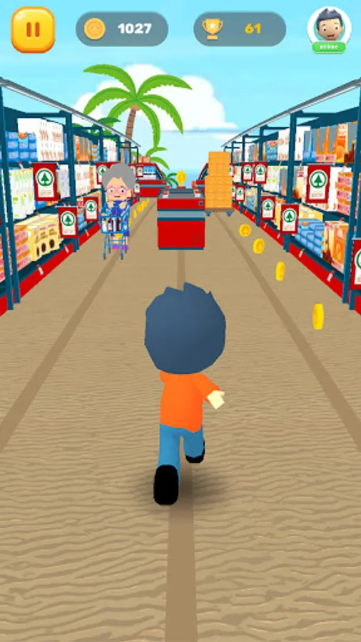 Run to an imaginary supermarket, where between the fine sand and an always blue sky, there are many shelves full of products! Collect lots of coins, dodge obstacles and take the many bonuses scattered between the lanes and ... be careful not to collide with other customers!