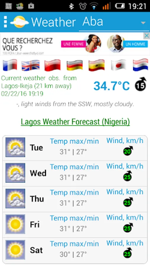 Weather information available for all Nigeria Town and Cities in SEVEN (7) LANGUAGES.