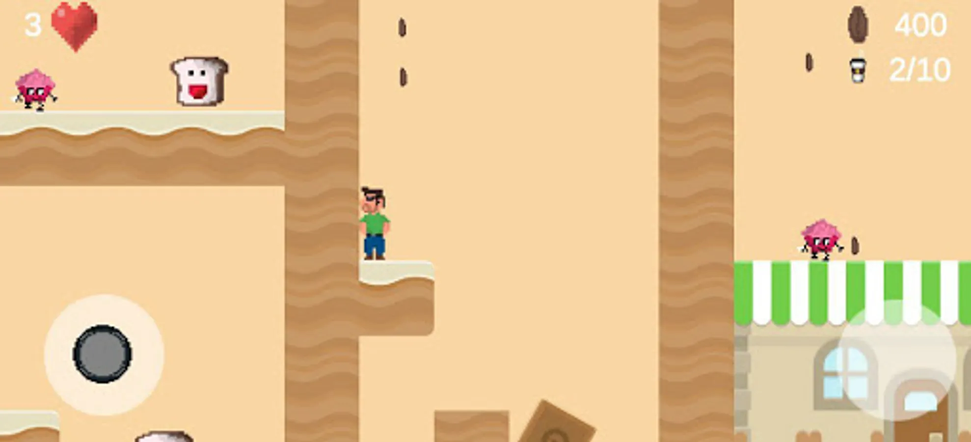 Simple platform game where you are Eric, an expert in Artificial Intelligence who loves sweet breads and coffee, and now it's time to put an end to them!