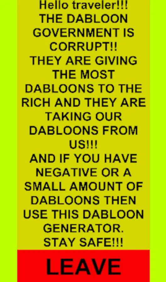 --*The Dabloon Government is corrupt and they are taking Dabloons from you!--*