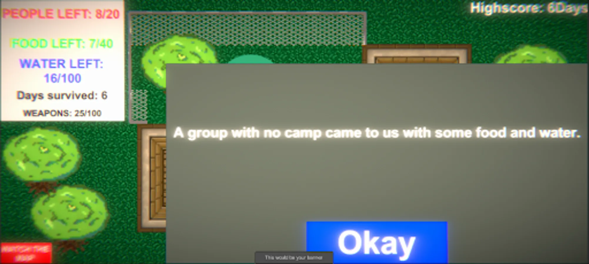 In this game you have to survive as long as possible, defend your camp or make choices.
