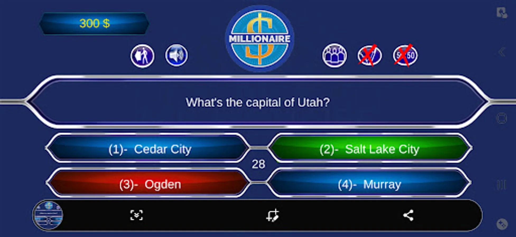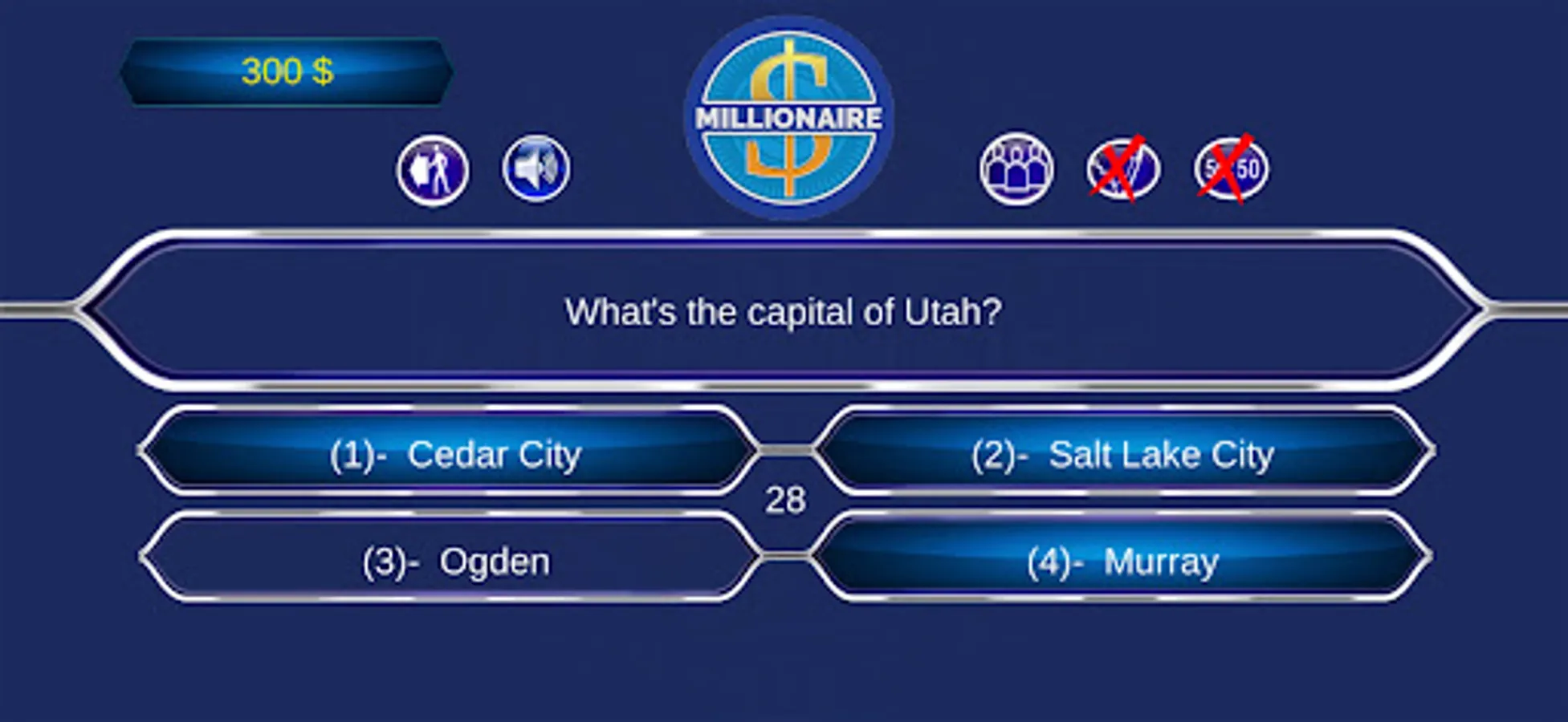Millionaire Game Free lets you experience the thrilling excitement of fighting for the grand prize of one million through 15 challenging trivia puzzles.