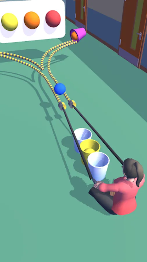 Control ropes to set the correct sequence, but BEWARE of the ball coming to you! If it hits you, you will not guess what happens!