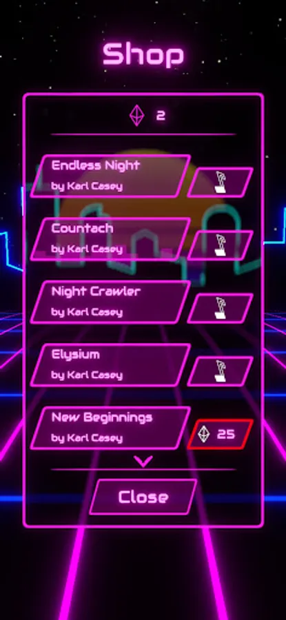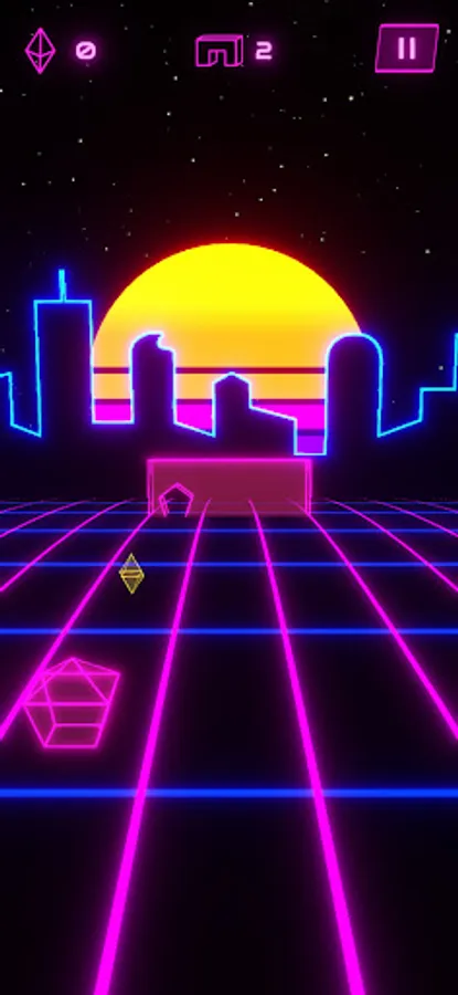 Esquiva tantos obstáculos como puedas mientras avanzas por una carretera infinita con estética neón y al ritmo de música Synthwave de Karl Casey.