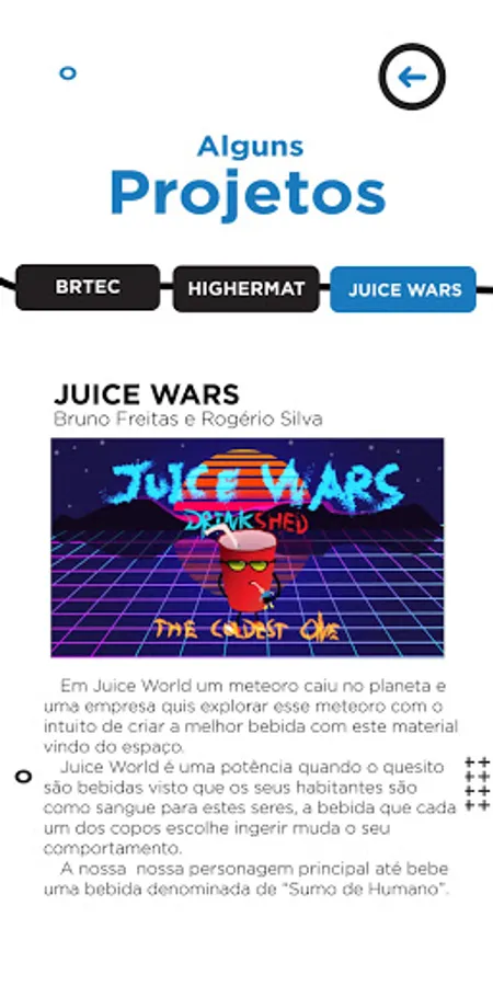 The application gives you access to the event's program, works done by students, as well as a small game to be able to have fun.