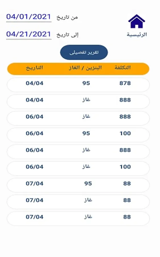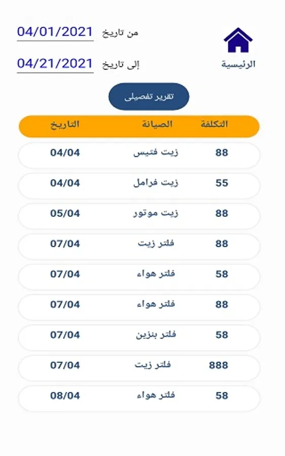 مع تطبيق الصيانة أصبحت إدارة السيارة والحصول على تقارير البنزين / الغاز الطبيعي أو أي حساب استهلاك آخر أسهل ؛ احصل على تقارير الوقود مرتبة حسب التاريخ في أي وقت.