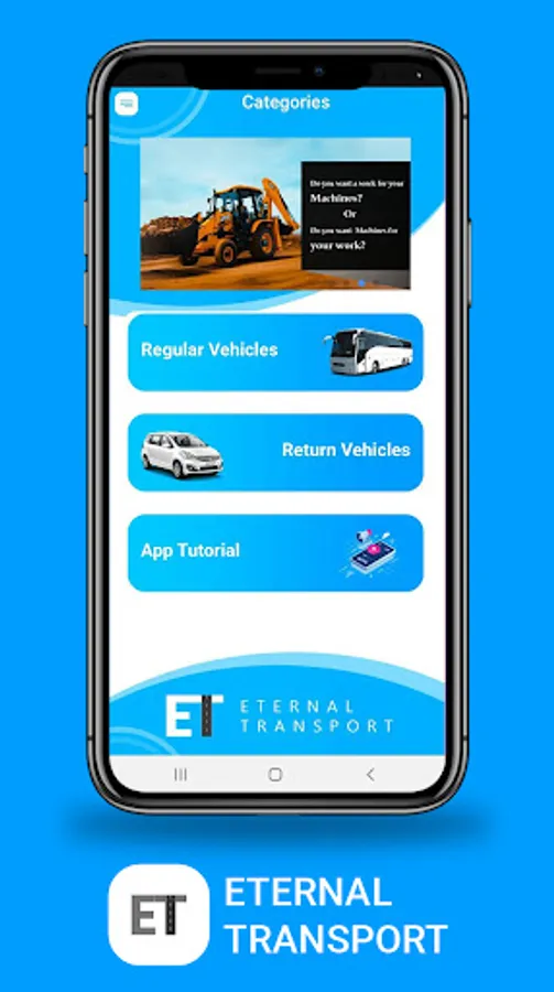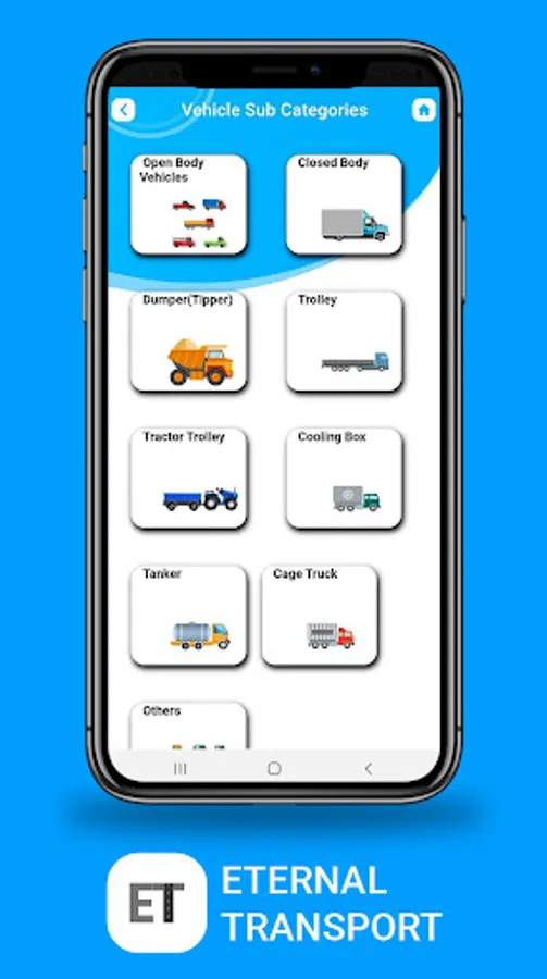 A. Regular Vehicles: When you click on this icon, categories like Trucks, Public Transport, Tractor, Earth Movers, etc. appear on the screen with their icons. You can click on any one of the icons to find the desired vehicle near you.