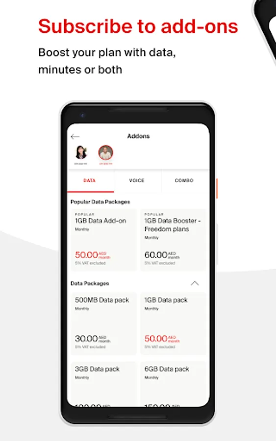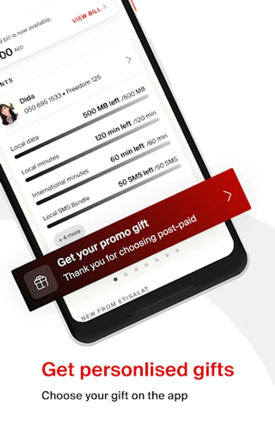 Get a free sim and create your own plan! Enjoy unlimited calls to one preferred Etisalat mobile number with a variety of data and voice packages offering international minutes & video calling. Grab exciting rewards like Smiles vouchers, Switch TV packs, Arena gaming and music with every recharge. Track your call usage, data usage, recharge history and manage spend on the My Etisalat UAE app.