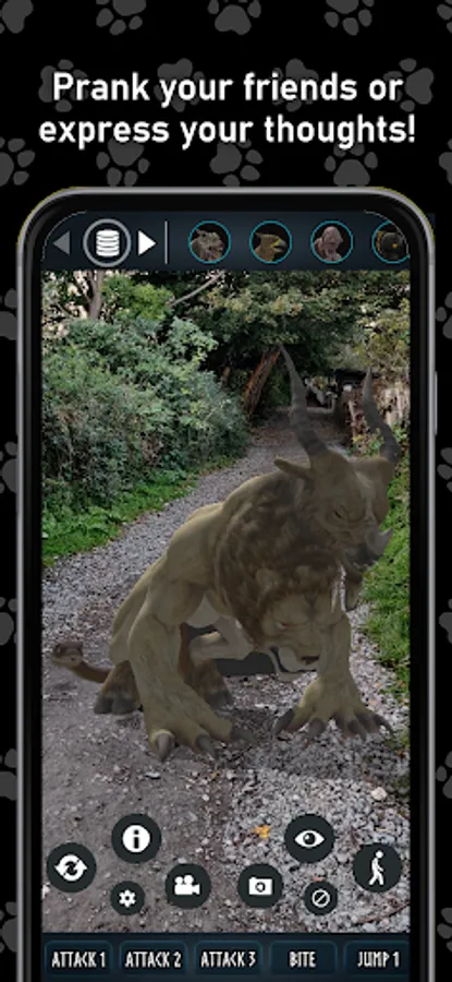 * Capture Videos with voice overs and animations using your AR camera and make your 3D Monster interact with the environment.
