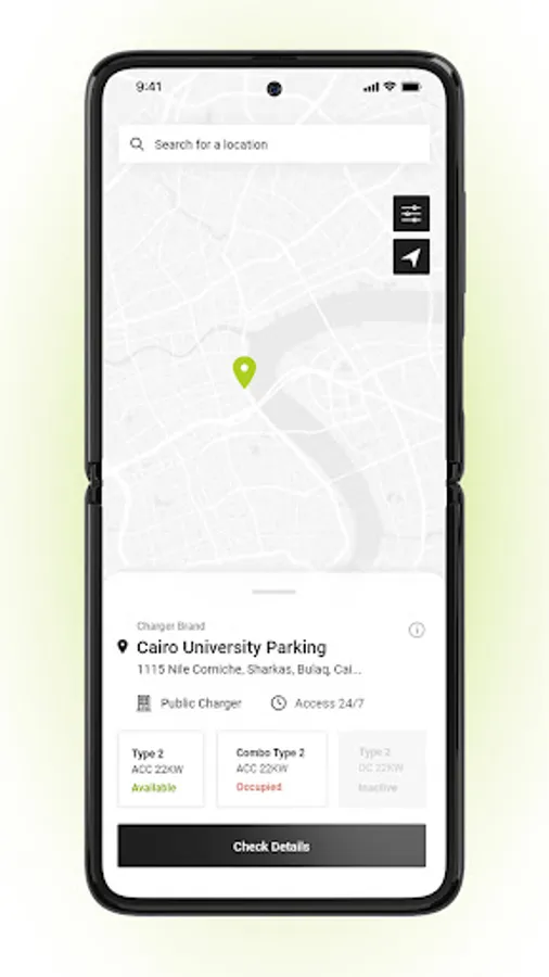 Access the charge stations in Egypt and the plug types supported for each station and the availability.