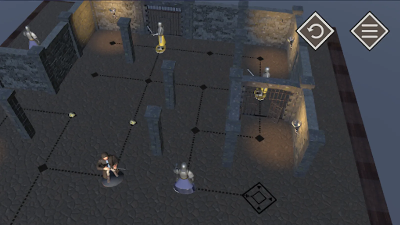 Move your pawn through nodes and lines in three different environments, avoid the knights guarding the palace, distract them or even eliminate them if needed.