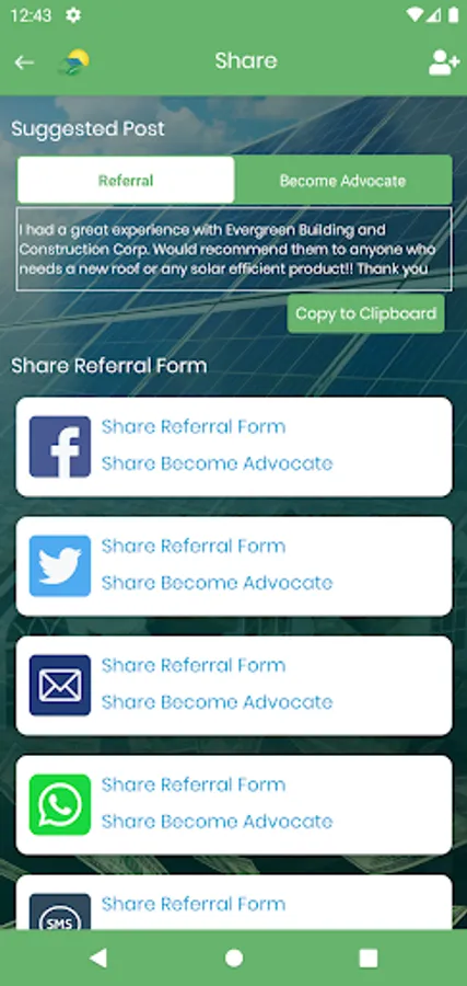 Evergreen Affiliate Program is a free app available for anyone to download and is used for those that want to earn rewards by sending referrals to Evergreen Affiliate Program. It is as simple as downloading the App, selecting the sales rep and registering. Once registered, you can begin sending referrals right away. It is the one app that will allow the user to easily submit referrals to Evergreen Affiliate Program and track the progress of your referral and rewards right on your mobile device. Referring has never been so easy.