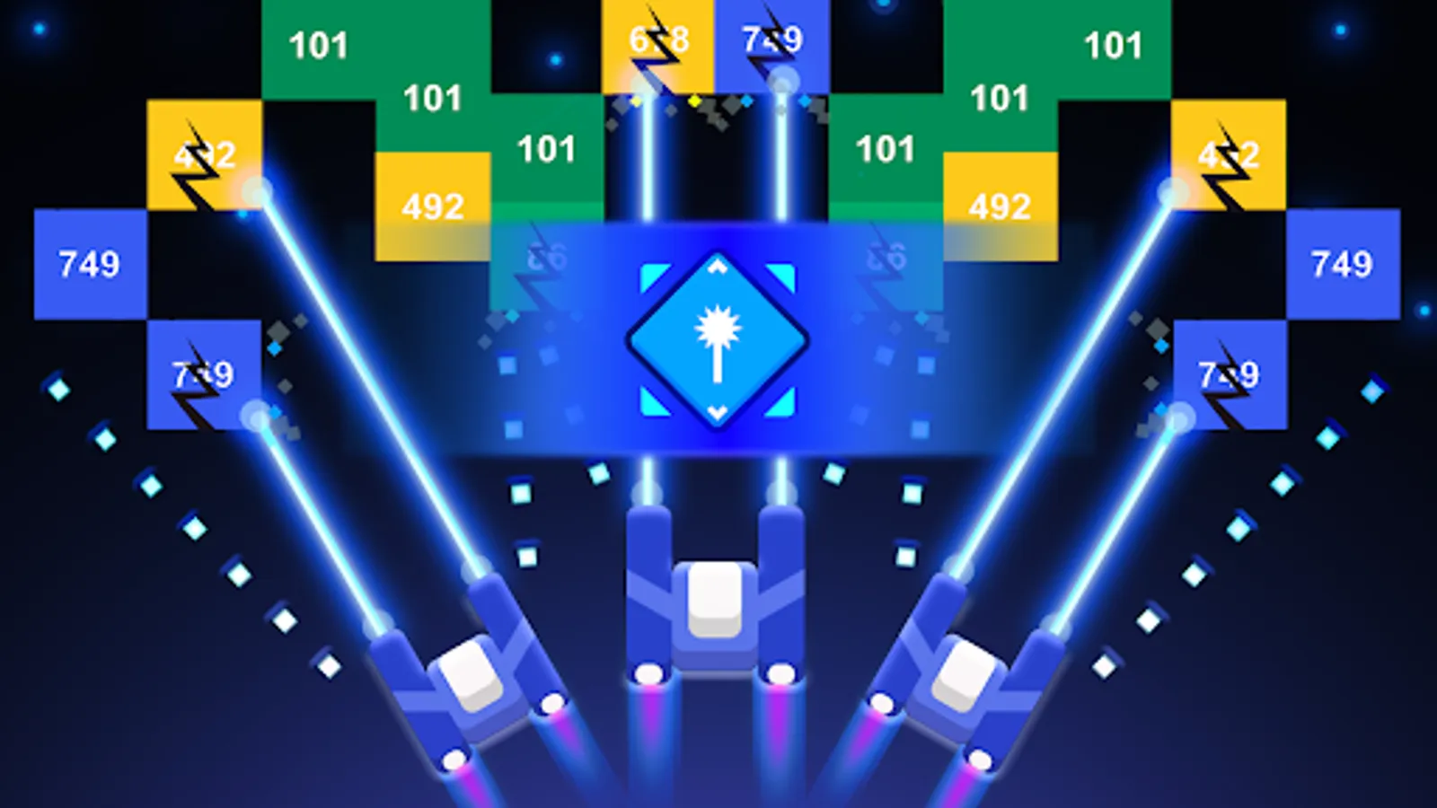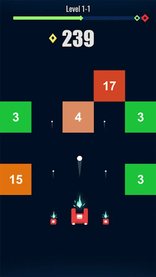 Your enemies in the game are represented by dangerous space invaders looking as multicolored square blocks with numbers flying at you. The color of these blocks depends on the number on them, which will help you to understand faster how much effort it takes to destroy them — the bigger the number on a block, the harder it will be for you to crush it.