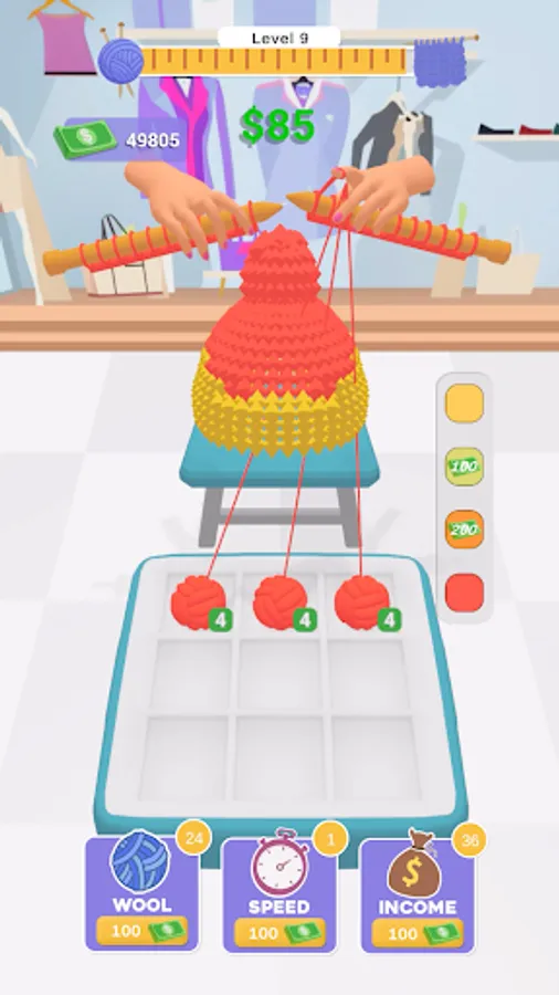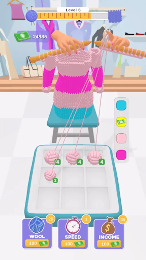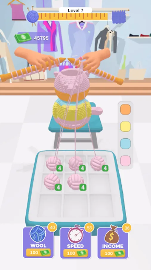 In Knit Fever, you'll spin a delightful tale of woolen wonders. Add new wool balls, boost your knitting speed, and maximize your income as you create a vibrant assortment of knitted garments. Drag and drop wool balls to merge them and unlock even more delightful colors and patterns!
