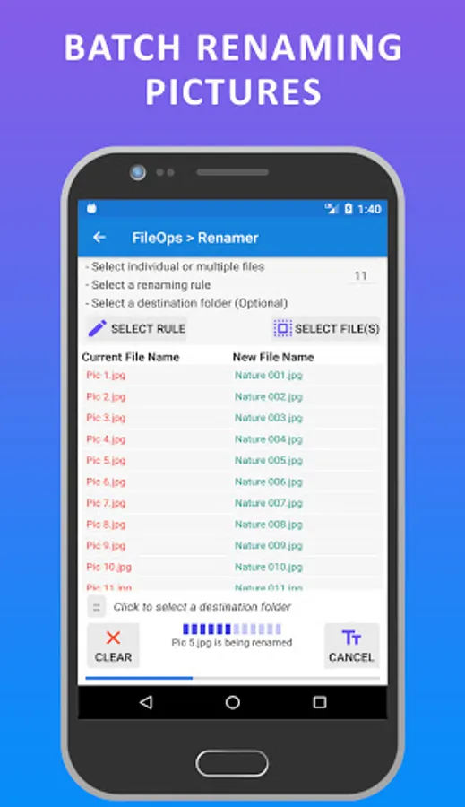 Batch rename files with nine (9) different rules and their parameters (Plus an option to copy the files with the new names to another folder to keep original ones intact)