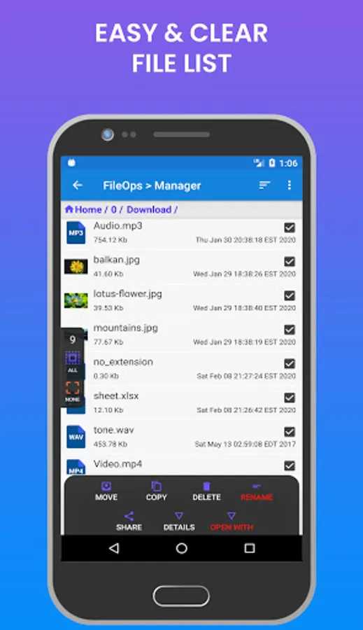 - Delete: Get rid of unwanted file(s) and folder(s) in bulk or individually