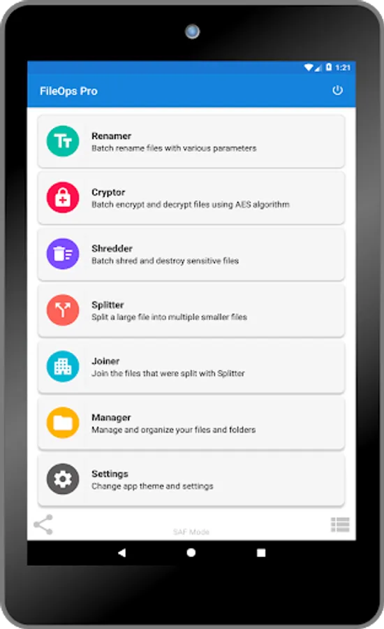 SAF Mode: This mode uses the Storage Access Framework libraries that requires the user to add storage devices manually (built-in storage, removable SD card, etc.) also recommended by Google for extra security
