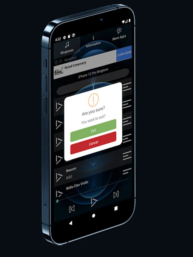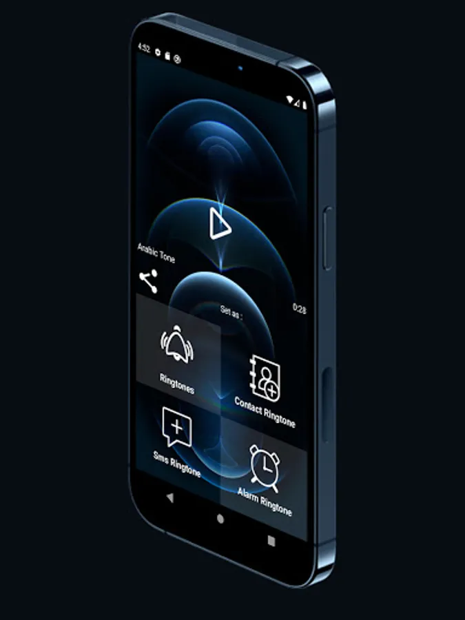 Apply the ringtone to your phone or particular contact in just few simple steps. First select your desired ringtone from the list and then you will be prompted with four Particular options named As Set as Default ringtone through which it will be applied for your caller tune. Assign to a Particular contact and this will set the ringtone for your desired contact. SMS or Notification this will set the ringtone for SMS or Notification. Alarm Ringtone, this will replace your alarm ringtone with our particular ringtone of your desire. You can also share the ringtone with your friends and family. You can also share the Phone 12 pro ringtones app.