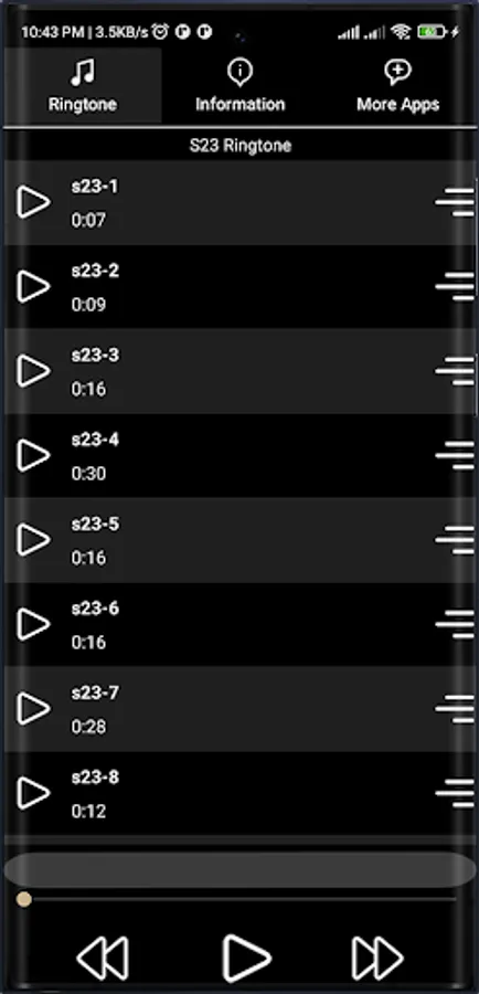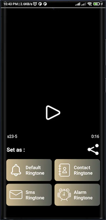 Apply the ringtone to your phone or particular contact in just few simple steps. First select your desired ringtone from the list and then you will be prompted with four Particular options named As Set as Default ringtone through which it will be applied for your caller tune. Assign to a Particular contact and this will set the ringtone for your desired contact. SMS or Notification this will set the ringtone for SMS or Notification. Alarm Ringtone, this will replace your alarm ringtone with our particular ringtone of your desire. You can also share the ringtone with your friends and family. You can also share the S23 ringtone app.