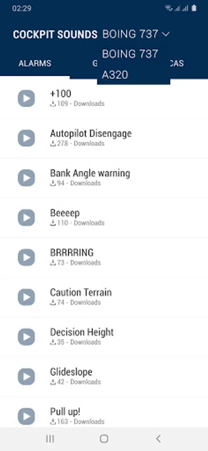 Listen to all alert sounds from an airplane cockpit Boing 737 and A320