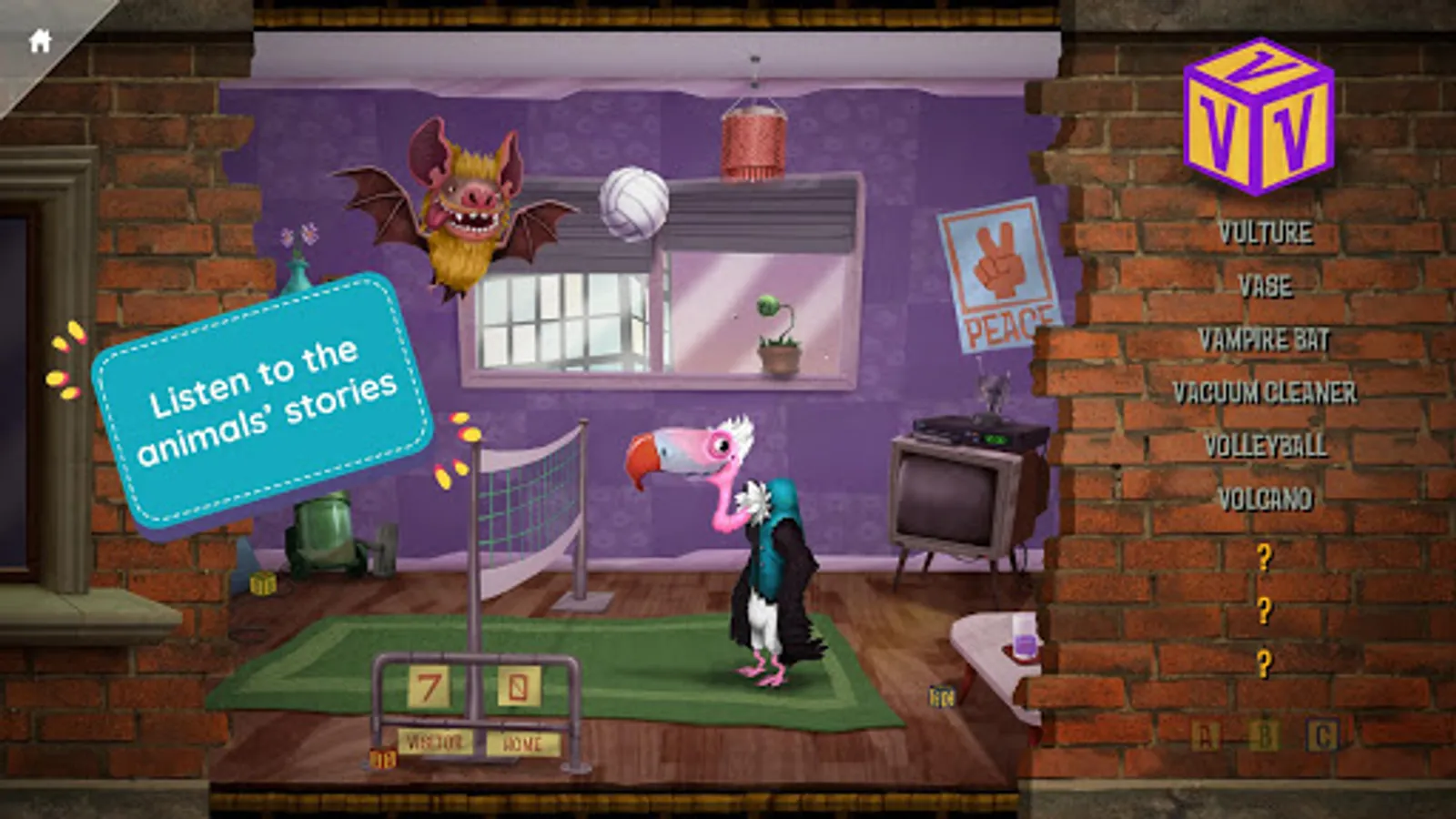 Designed to develop and grow literacy and word association skills, and supported by narration, children build their understanding of phonetics and shape and object identification as they explore each apartment – one for each letter of the alphabet. These learning outcomes are reinforced through positive feedback and repetition in each apartment and each time they return to play.