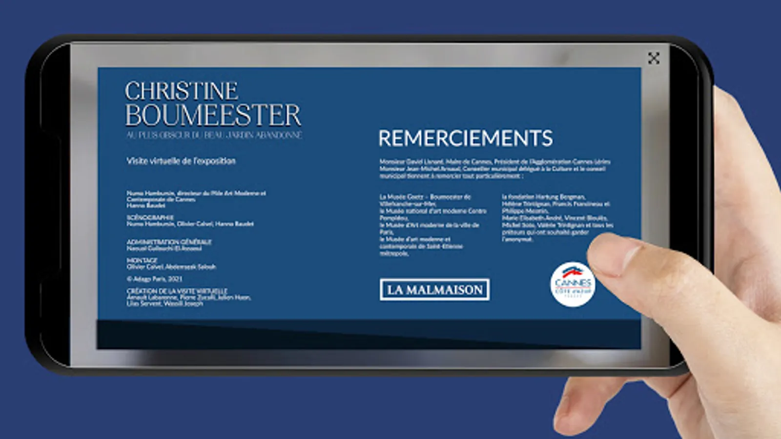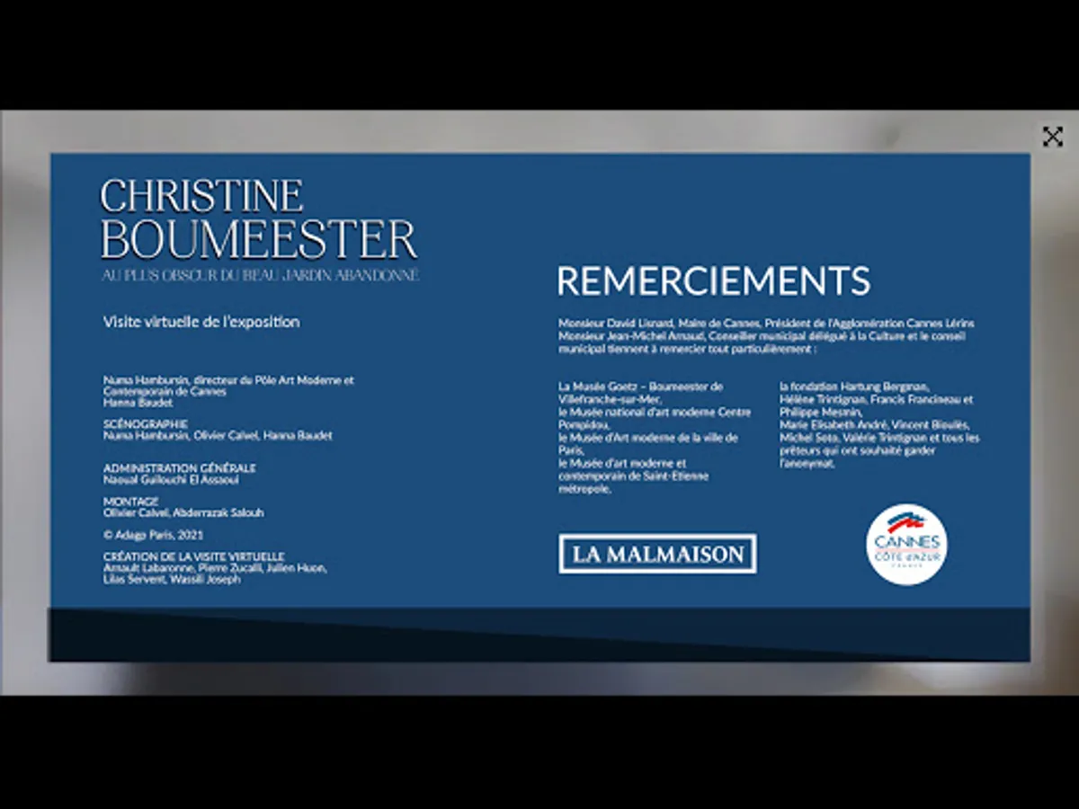 360 ° interactive tour of the exhibition dedicated to Christine Boumeester which was presented at the Malmaison in 2021. The Cannes town hall pays tribute to an artist whose life and work resemble the novel. Wife of the famous painter Henri Goetz, she appeared in a group gathered around the personality of the painter Pierre Soulages. The latter wrote about her after her death: "What I want to remember about her escapes words, but, I find her easily in the most obscure, the most silent of the beautiful abandoned garden. The artists present were: Zao Wou-Ki, Vieira da Silva, Hans Hartung, etc. With her husband, she lived on the French Riviera, and it was in Cannes that they found refuge during World War II. Numa Hambursin is in charge of the police station with Hanna Baudet and declares: "The breathless life of Christine Boumeester is punctuated by exiles, retreats and wanderings, tinged with this Orient which saw her birth when Europe occupied the world, engraved with adventures dictated by great history and the encounter of now legendary and sacred monsters. »Works from public or private collections. Our compliments to the mayor of Cannes, David Lisnard.