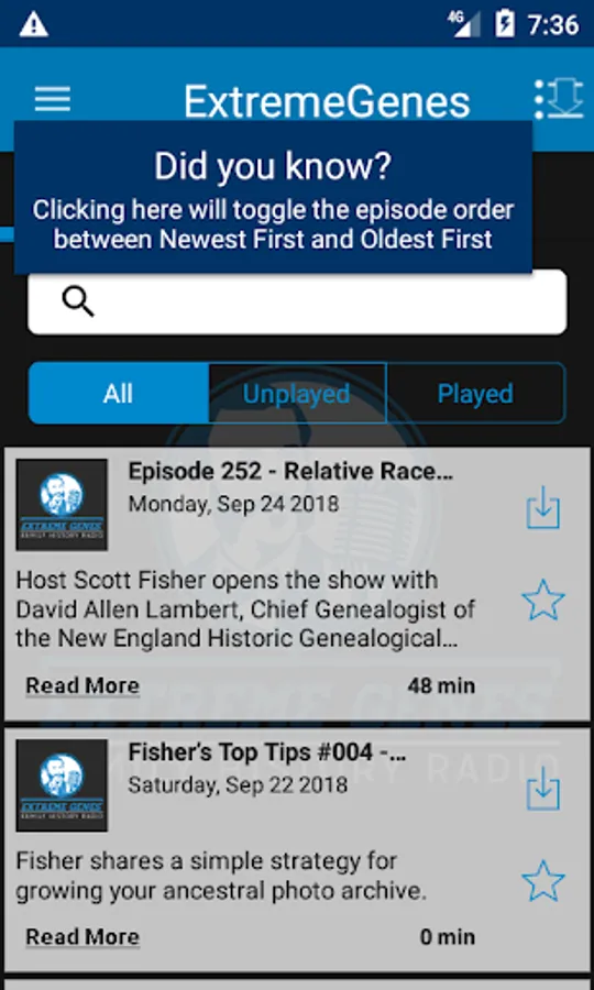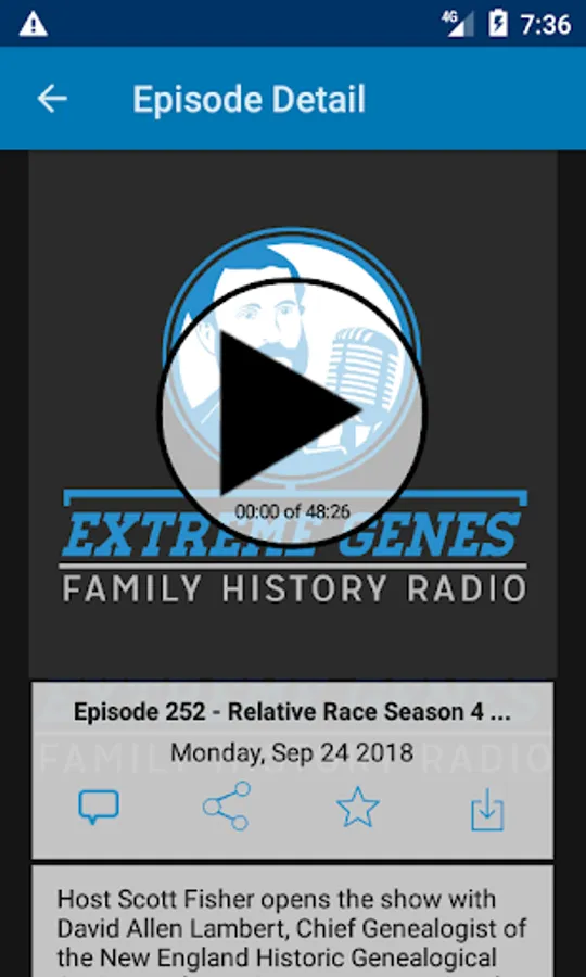 Hello Genies! This is the most convenient way to access Extreme Genes Family History Radio on your phone. With this app you are always connected to the latest episodes and the show. You can also star your favorite episodes and save them to a list so you can easily enjoy them over and over! This app is complete access to Extreme Genes and if you're a fan of the show you won't want to be without it!