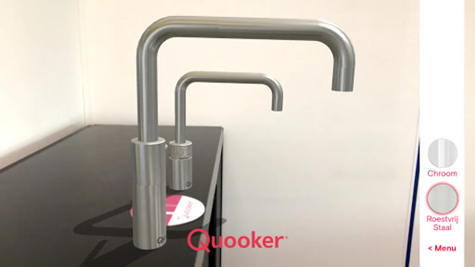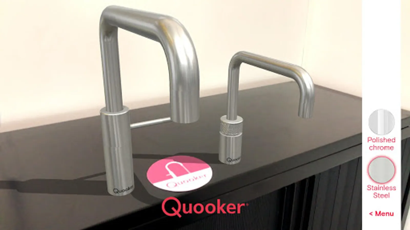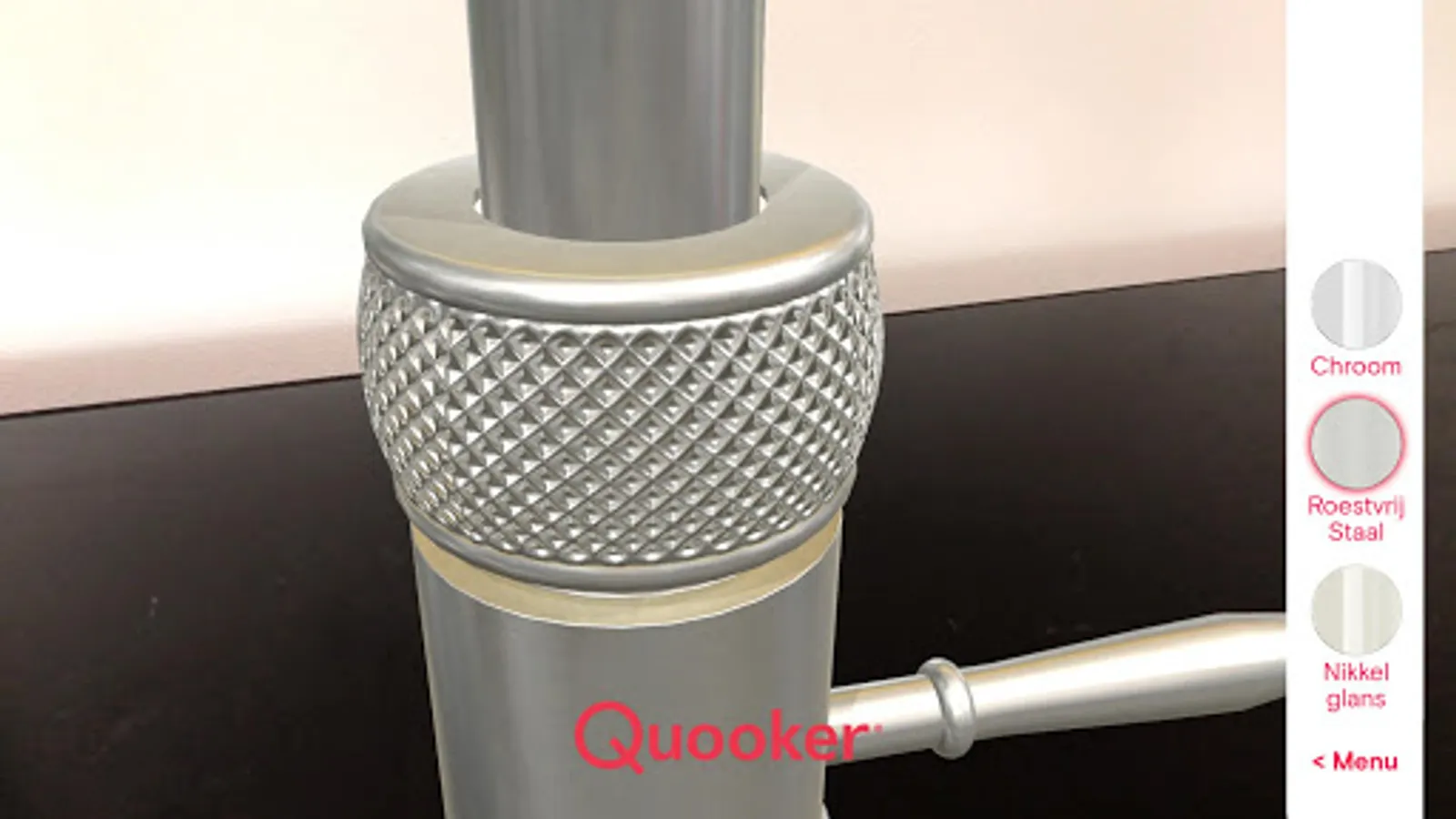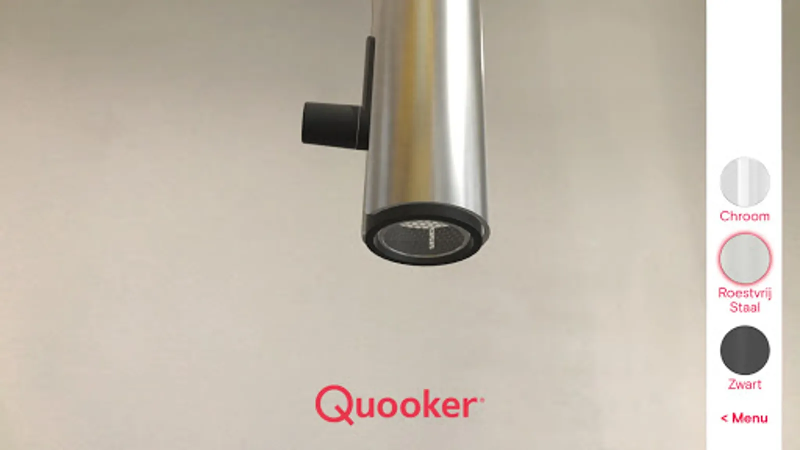 Select the tap in the overview menu and switch between the different tap finishes. Select 'Menu' to return to the overview menu. Have fun using the Quooker Augmented Reality App!