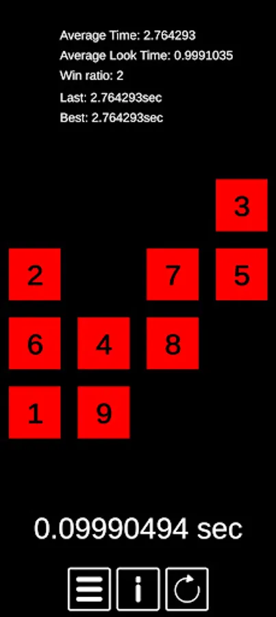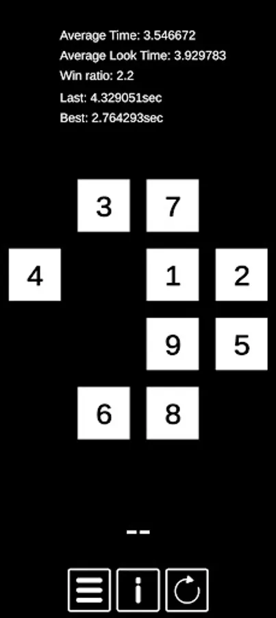 Use and develop memory techniques to remember the placement of all 9 numbers. You'll have as much time as you like to memorise their locations but once you start, you will have to rely on your memory to remember the locations of the numbers. The numbers are randomised and spread apart to ensure each turn is unique, engaging your short term memory and keeping each turn balanced.