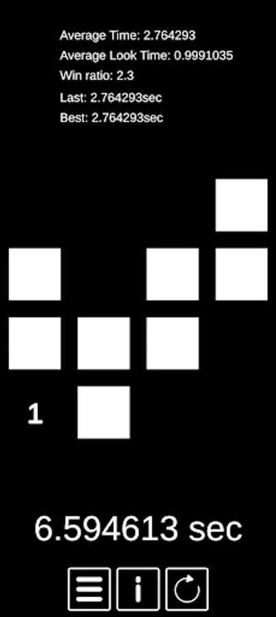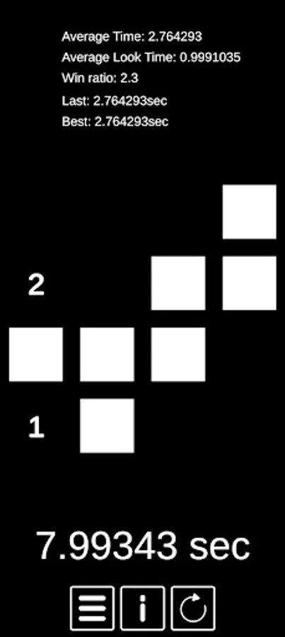 is inspired by the Cognitive Tradeoff Hypothesis. It tests the limits of human short term memory. This game is inspired by Professor Tetsuro Matsuzawa's work testing the almost eidetic short term memory of chimpanzees and aims to review the extent to which humans can apply their short term memory.