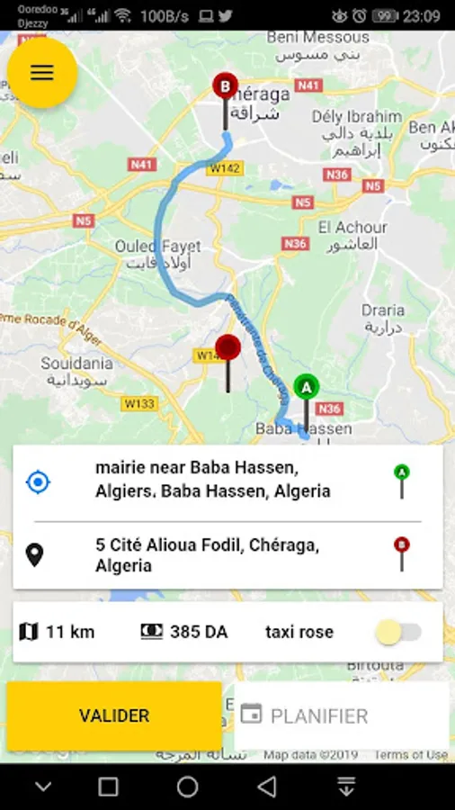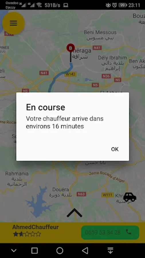 and / or 4G). The ALLO REKBA service is based on a geolocation principle. Any customer wishing to make a journey must