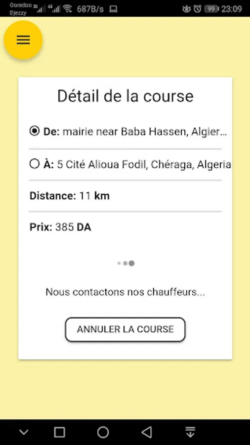 screen, the customer can then validate the request by pressing the button request an Allo Rekba. The request is sent