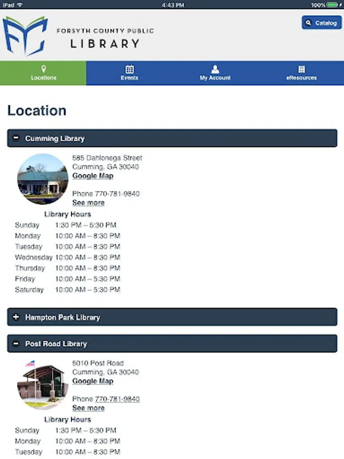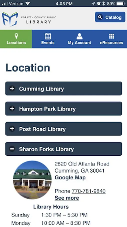 The Forsyth County Public Library app allows for easy access to essential library functions: