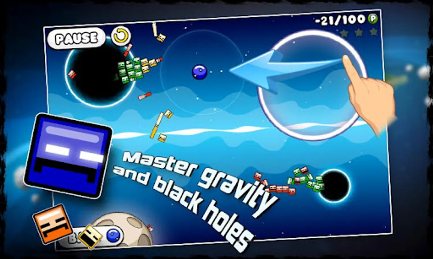 Journey through beautifully crafted episodes, each with its own stunning visual style and physics twists. Float through bright skies, dive into shimmering underwater depths, explore glowing caves, and venture into the sparkling vastness of deep space. Every world brings fresh challenges and eye-catching scenery.