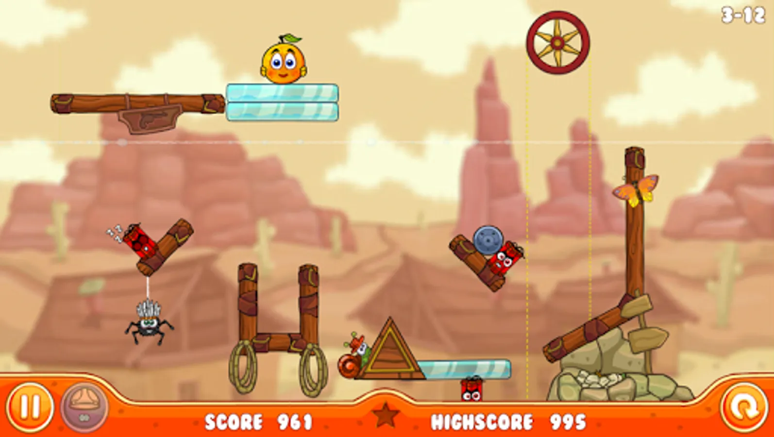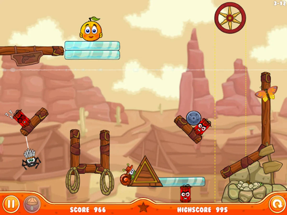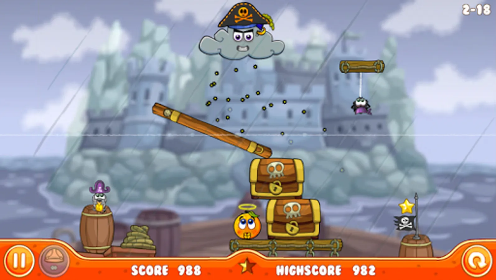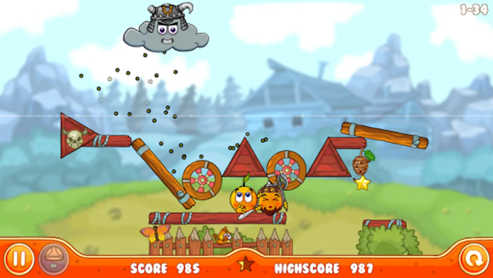 We stayed true to the original: drag and drop various objects into the level to build a shelter and protect your oranges. But this time, keep an eye on the background while the evil rain cloud passes by.