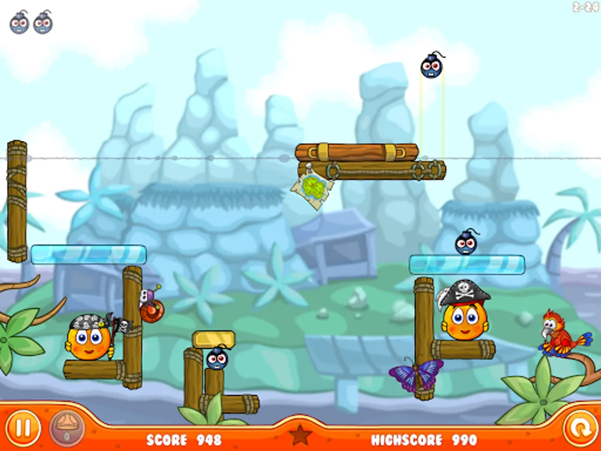 Enjoy travel through time, with each epoch having its own unique graphics and gameplay elements. Meet knight and pirate oranges on your way!