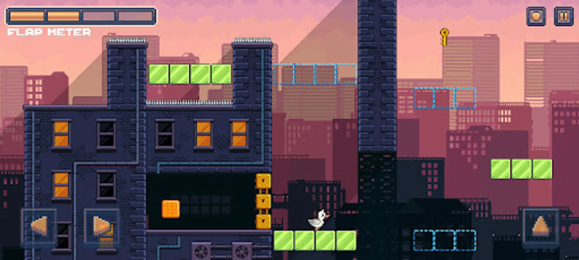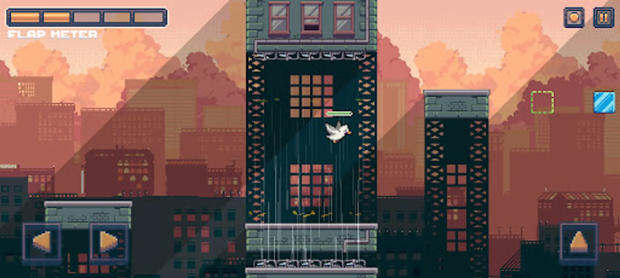 Using your timing and quick decision-making skills, help the injured little bird that is trapped on the rooftops reach its food.