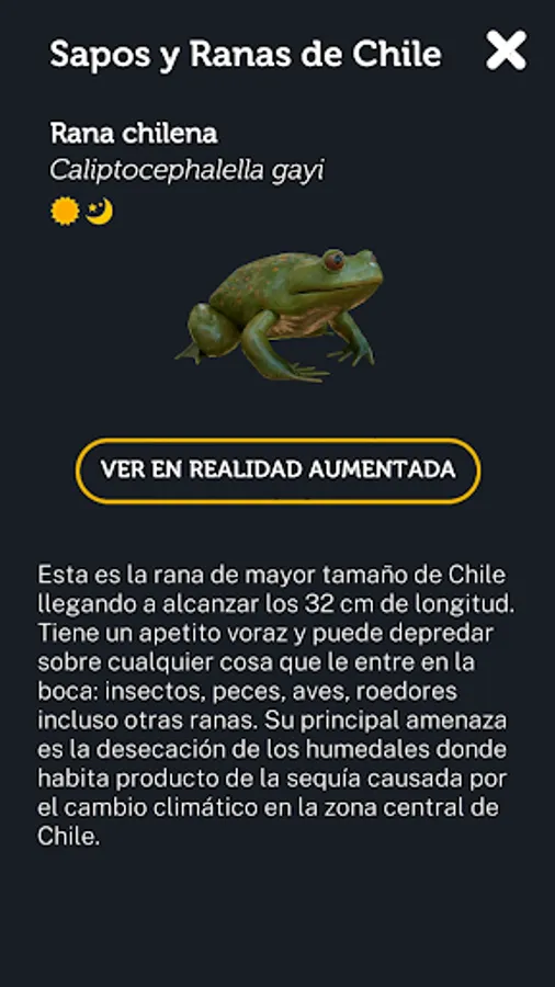 The new version of the APP "Public Science" brings 10 species of frogs from the south central zone of our country, to learn a little more about their fascinating life in augmented reality.