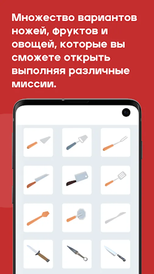 - Turli topshiriqlarni bajarish orqali ochishingiz mumkin bo'lgan pichoqlar, meva va sabzavotlar uchun ko'plab variantlar.