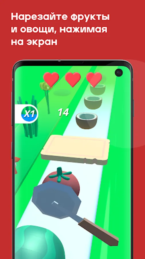 Bizning qiziqarli o'yinimizda siz eng yuqori ball olish uchun meva va sabzavotlarni kesasiz. O'yin mexanikasi juda oddiy: pichoq meva va sabzavotlarni kesish uchun barmog'ingizni telefon ekranida ushlab turing, lekin temir yoki yog'och taxtalar ko'rinishidagi to'siqlarni ko'rganingizda barmog'ingizni qo'yib yuborishni unutmang.