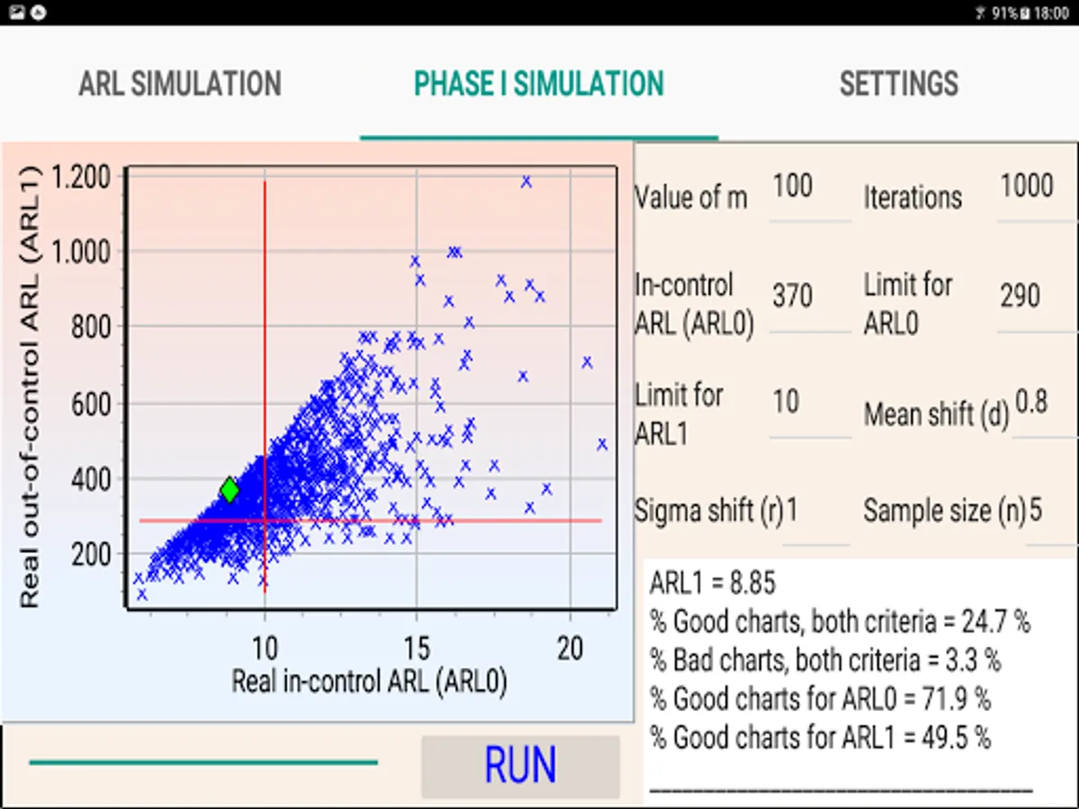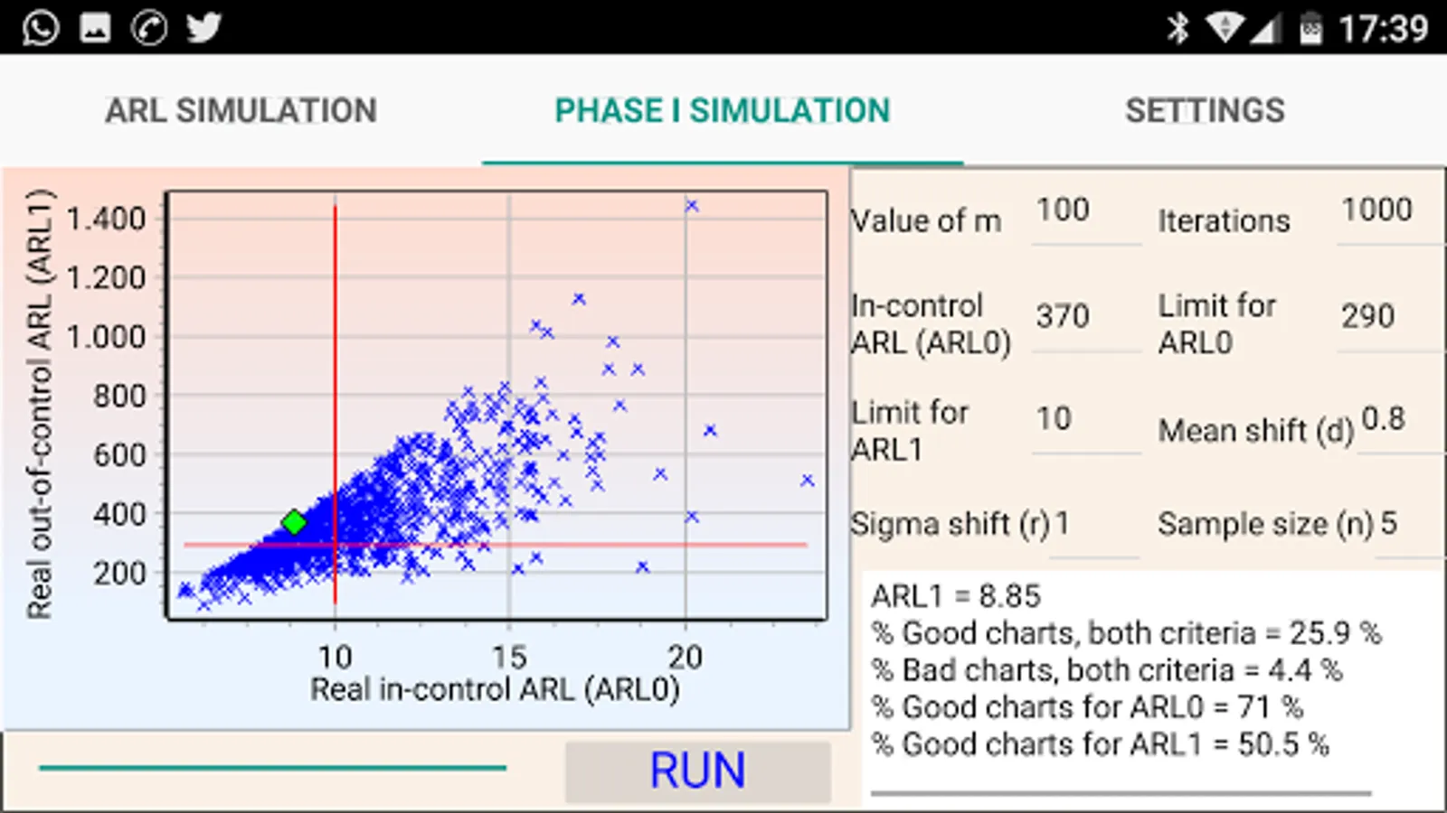 In addition, it simulates real performance of the Xbar chart (real in-control and out-of-control ARL) when the mean and sigma are estimated during Phase I.