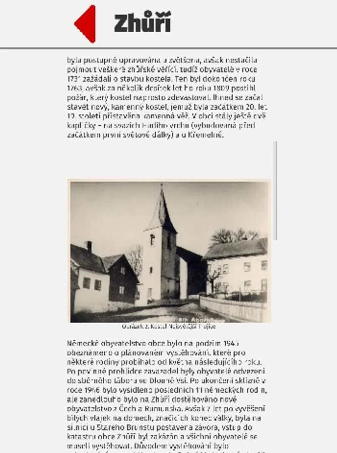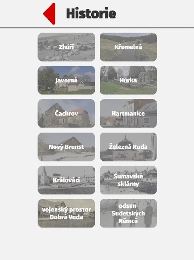 Among other things, Ztracené Zhůří offers a historical description of the surroundings and events that shaped life in Královské Hvozd, i.e. in today's central Šumava. For a better idea of life here, the application includes period photos, which can be used to compare the state of the landscape or created virtual models, for example.